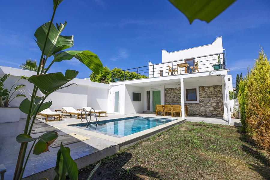 Villa ARS 2; is one of the holiday villas located in Gumbet-Bodrum, recommended for your villa rental requests. The villa, with 4 bedrooms, a private pool and a sea near location, is an ideal option for villa vacations for large families and friend groups of up to 8 peoples. Designed in a highly modern style and furnished with luxurious furniture, Villa ARS 2 provides every comfort you may need in a holiday villa.